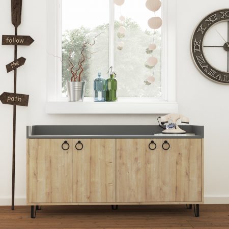 Original price was: 289.00 KM.231.20 KMCurrent price is: 231.20 KM.This stylish console is perfect addition to any room. With its unique design, it is sure to make a statement and become a conversation piece. It offers ample storage with its 4 cabinets and interior shelves, allowing you to keep your space organized and clutter-free.Upgrade your home with our unique and stylish console.