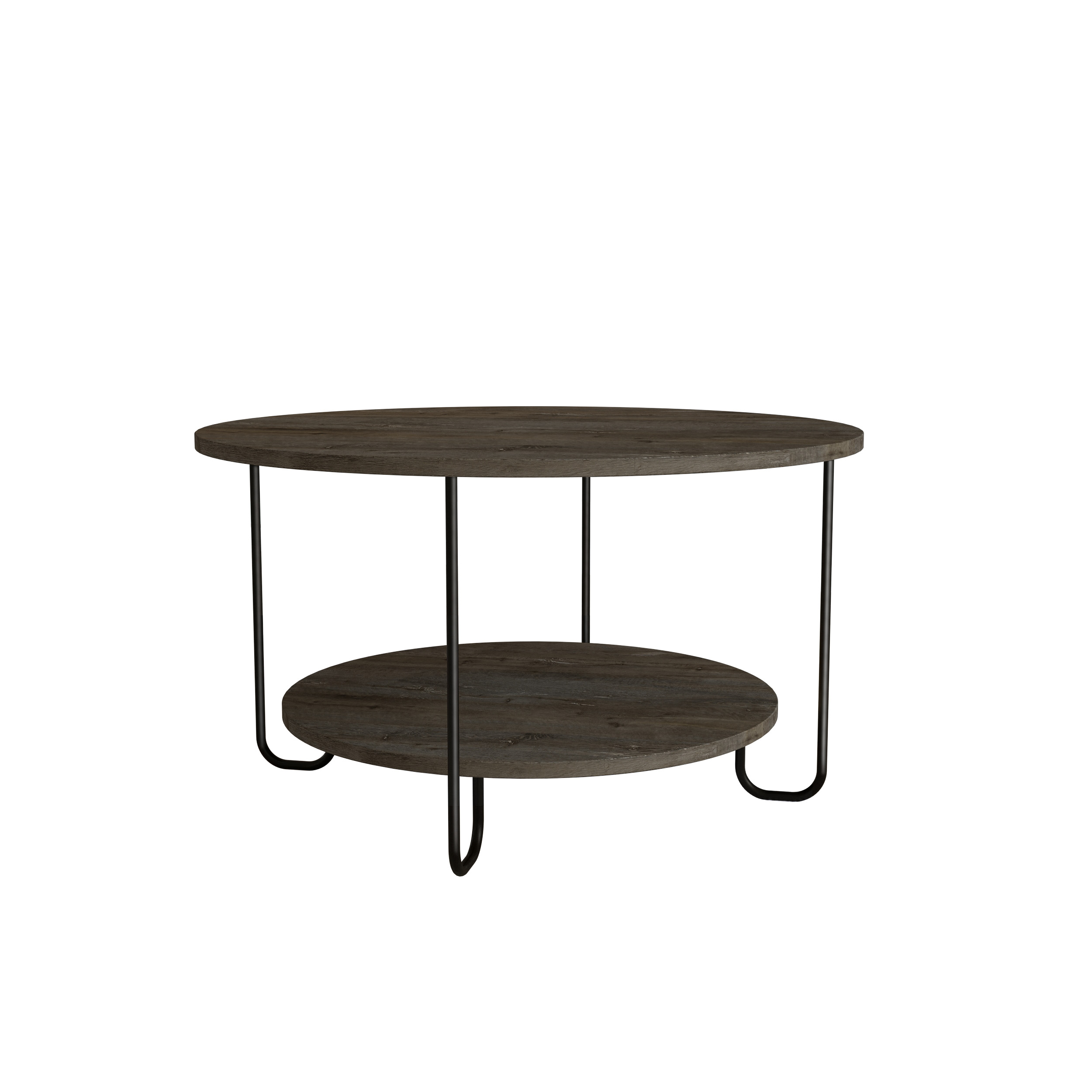 Introducing sleek and stylish round coffee table, perfect addition to any modern or contemporary living room. With its simple yet elegant design, this coffee table is sure to impress. One of the standout features is open shelf, which provides a convenient space for storing or displaying items. U-shaped metal legs add to stability and durability of coffee table, ensuring that it will stand test of time and remain stable even when heavily loaded.